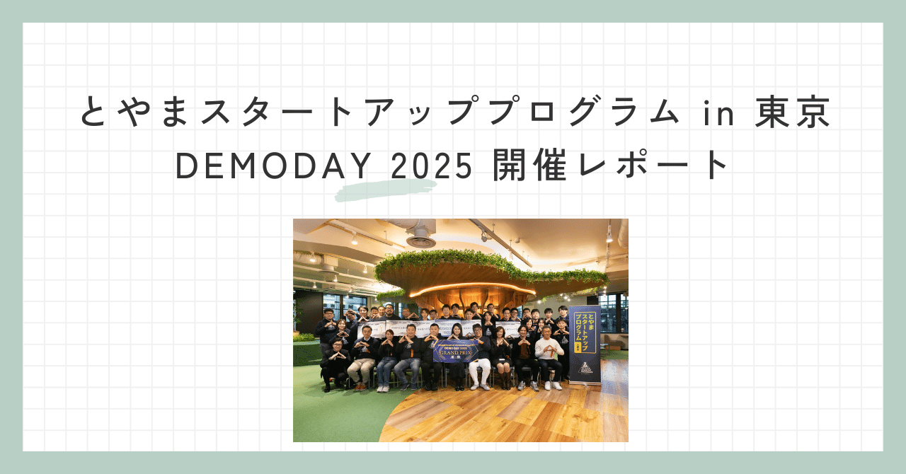 皆さんこんにちは!「とやまスタートアッププログラム in 東京」事務局です。さて、この度2025年2月15日(土)に行われた第6期最終回「DEMO DAY 2025」ファイナルが終了し...