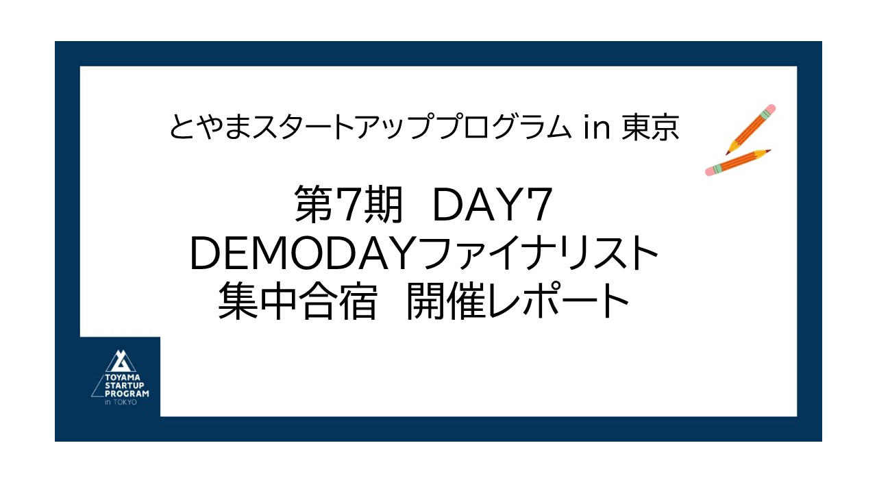 「とやまスタートアッププログラム in 東京」第7期 DEMODAY2026ファイナリスト集中合宿の開催レポートを、当事務局noteにて公開しました。